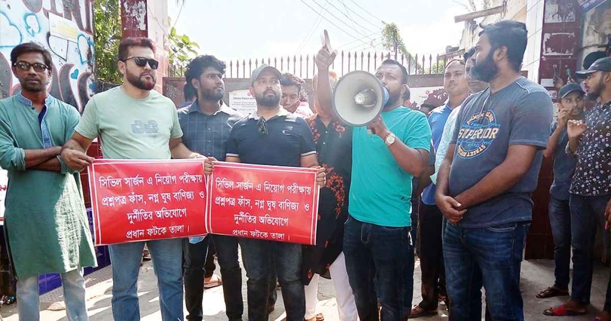 এ সময় উপস্থিত সাংবাদিকরা তাদের ছবি ও বক্তব্য সংগ্রহের চেষ্টা করলে তারা দ্রুত সরে যান। পরে ঘটনাটির একাধিক ভিডিও ও স্থিরচিত্র সামাজিক যোগাযোগ মাধ্যমে ভাইরাল হলে ব্যাপক আলোচনা-সমালোচনার সৃষ্টি হয়। তারই ধারাবাহিকতায় বিক্ষুব্ধ জনতা শনিবার দুপুরে সিভিল সার্জন অফিস ঘেরাও করে বিক্ষোভ সমাবেশ করেন। তারা দাবি জানান, নিয়োগ পরীক্ষা বাতিল করতে হবে এবং ঘটনার সাথে জড়িতদের আইনের আওতায় আনতে হবে।