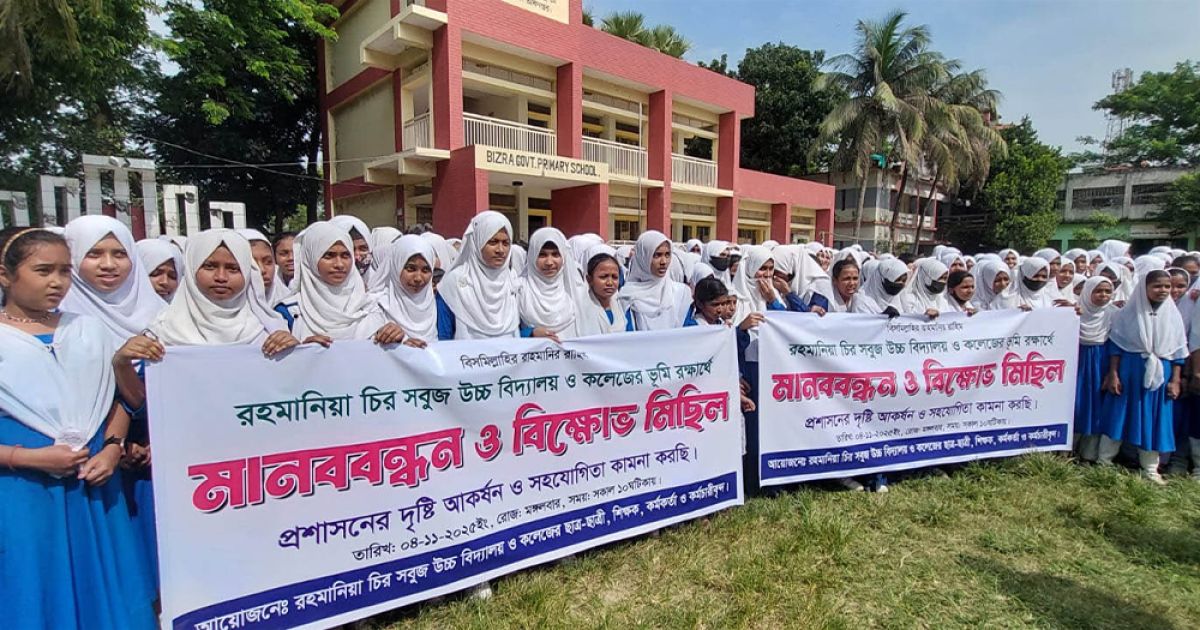 কুমিল্লার লাকসামে শতবর্ষী শিক্ষা প্রতিষ্ঠান বিজরা রহমানিয়া চিরসবুজ উচ্চ বিদ্যালয় ও কলেজের জায়গা দখলের চেষ্টার প্রতিবাদে শিক্ষার্থী, শিক্ষক ও এলাকাবাসী মানববন্ধন ও বিক্ষোভ মিছিল করেছে। মঙ্গলবার সকালে কুমিল্লা–চাঁদপুর আঞ্চলিক মহাসড়কের বিজরা বাজার এলাকায় এ মানববন্ধন অনুষ্ঠিত হয়। সকাল ১০টায় শুরু হওয়া মানববন্ধন শেষে অংশগ্রহণকারীরা একটি বিক্ষোভ মিছিল নিয়ে বিজরা বাজারের বিভিন্ন সড়ক প্রদক্ষিণ করে প্রতিবাদ সমাবেশ করেন।