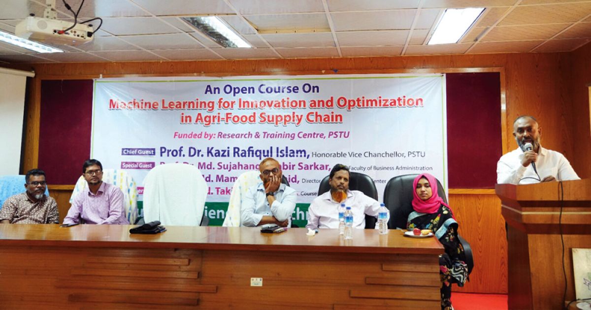 প্রধান অতিথির বক্তব্যে উপাচার্য প্রফেসর ড. কাজী রফিকুল ইসলাম বলেন, ‘কৃষি ও খাদ্য সরবরাহ ব্যবস্থাকে আধুনিকায়নের জন্য মেশিন লার্নিং ও তথ্যপ্রযুক্তির ব্যবহার সময়ের দাবি। শিক্ষার্থীদের এই প্রযুক্তিতে দক্ষ করে গড়ে তুললে ভবিষ্যতের কৃষি হবে আরও টেকসই, উদ্ভাবননির্ভর ও প্রতিযোগিতামূলক।’