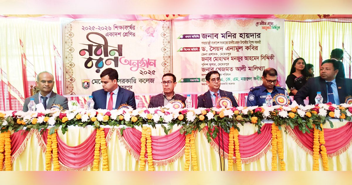 রঙিন সাজ, আনন্দ উল্লাস আর মধুর আবহে অনুষ্ঠিত হলো ঐতিহ্যবাহী মেহেরপুর সরকারি কলেজের ২০২৫-২৬ শিক্ষাবর্ষের একাদশ শ্রেণির নবীনবরণ ও সাংস্কৃতিক অনুষ্ঠান। নবীনবরণ উপলক্ষে কলেজ ক্যাম্পাসজুড়ে সকাল থেকেই ছিল উৎসবের আমেজ- রঙিন ব্যানার, ফুলের মালা, আর নবীন-প্রবীণের হাসিমুখে মুখরিত হয়ে ওঠে পুরো পরিবেশ।