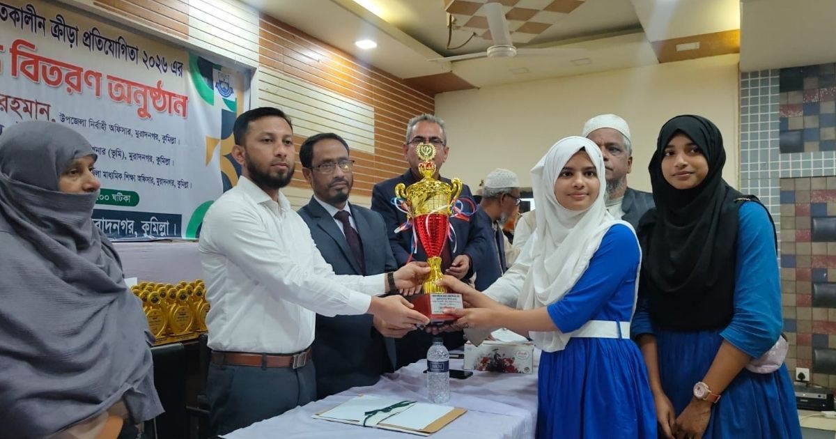 কুমিল্লার মুরাদনগর উপজেলায় জাতীয় শিক্ষা সপ্তাহ ও ৫৪ তম শীতকালীন ক্রীড়া প্রতিযোগিতার পুরস্কার ও সনদ বিতরণ করা হয়েছে। মঙ্গলবার (৩ ফেব্রুয়ারি) বেলা ১১ টায় উপজেলা প্রশাসন ও মাধ্যমিক শিক্ষা অফিসের আয়োজনে উপজেলা কবি নজরুল মিলনায়তনে এ পুরস্কার ও সনদ বিতরণ করা হয়।