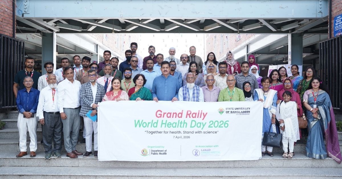 ‘Together for health. Stand with science’- এই প্রতিপাদ্যকে সামনে রেখে স্টেট ইউনিভার্সিটি অব বাংলাদেশে পালিত হলো বিশ্ব স্বাস্থ্য দিবস ২০২৬। শুক্রবার সকাল ১০:৩০ মিনিটে বিশ্ববিদ্যালয়ের ‘স্কলার্স ইন’ সেমিনার কক্ষে জনস্বাস্থ্য বিষয়ক এক বিশেষ সেমিনার অনুষ্ঠিত হয়।