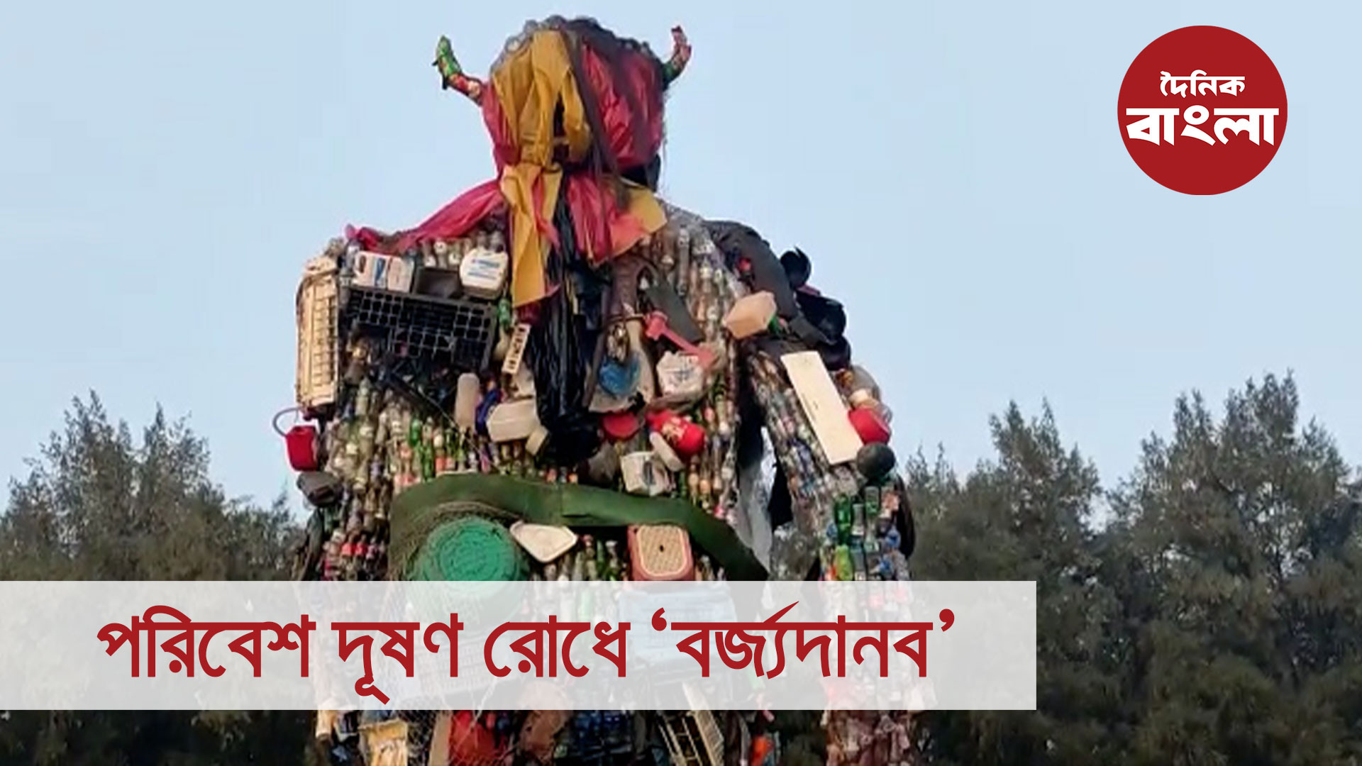 কক্সবাজার সমুদ্র সৈকতে সুগন্ধা পয়েন্টের বালিয়াড়িতে প্লাস্টিকের ‘দানব’। সমুদ্রে প্লাস্টিক দূষণ রোধে সচেতনতা সৃষ্টি করতেই এই উদ্যোগ নিয়েছে ‘বিদ্যানন্দ ফাউন্ডেশন’। বৃহস্পতিবার দানবটি সবার জন্য উন্মুক্ত করা হয়। ‘দানব’ দেখতে ভিড় করছেন পর্যটক ও স্থানীয়রা।
