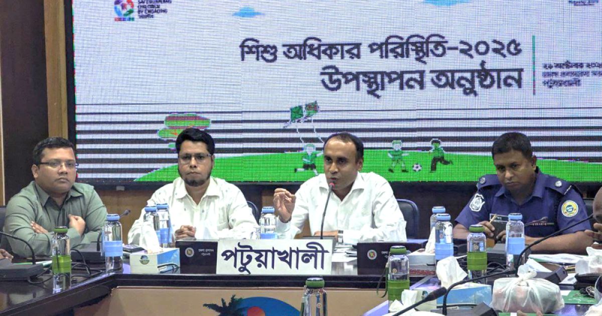 বাংলাদেশে শিশু অধিকার ও সুরক্ষার বর্তমান সংকটময় পরিস্থিতি নিয়ে গভীর উদ্বেগ প্রকাশ করে পটুয়াখালীতে অনুষ্ঠিত হয়েছে ‘শিশু অধিকার পরিস্থিতি উপস্থাপন’ শীর্ষক আলোচনা সভা। বুধবার এ অনুষ্ঠানটি যৌথভাবে আয়োজন করে লাল সবুজ সোসাইটি এবং মানুষের জন্য ফাউন্ডেশন।
