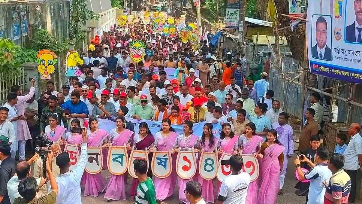 মঙ্গলবার (১৪ এপ্রিল) দিনটির সূচনা হয় সকাল ৯টায় এক বর্ণাঢ্য বৈশাখী শোভাযাত্রার মাধ্যমে। উপজেলার কেন্দ্রস্থল থেকে শুরু হয়ে শোভাযাত্রাটি প্রধান প্রধান সড়ক প্রদক্ষিণ করে। রঙিন ব্যানার, বৈশাখী পোশাক এবং ঢাক-ঢোলের তালে শোভাযাত্রাটি তুলে ধরে বাঙালির ঐতিহ্যবাহী সংস্কৃতির রূপ।