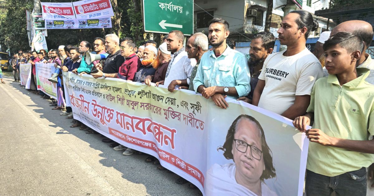 বক্তারা আরও বলেন, বাউল শিল্পী আবুল সরকারকে নিরাপত্তার কথা বলে গ্রেপ্তার করে কারাগারে পাঠানো হয়েছে, যা অমানবিক ও অগ্রহণযোগ্য। অবিলম্বে তার নিঃশর্ত মুক্তি দাবি করেন তারা।