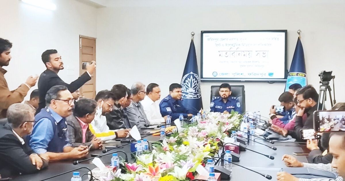 ফরিদপুরের কর্মরত প্রিন্ট ও ইলেকট্রনিক মিডিয়ার সাংবাদিকদের সাথে নবাগত পুলিশ সুপার মোহাম্মদ নজরুল ইসলাম পিপিএম -এর মতবিনিময় সভা অনুষ্ঠিত হয়েছে। বুধবার (১০ ডিসেম্বর) সকাল সাড়ে ১০টায় পুলিশ সুপারের সম্মেলন কক্ষে অনুষ্ঠিত মত বিনিময় সভায় সাংবাদিকরা ফরিদপুর শহরের যানজট, রেজিস্ট্রেশনবিহীন মোটরসাইকেল চালনা, অপসংবাদিকতা, আইনশৃঙ্খলা পরিস্থিতি, অবৈধভাবে ফুটপাত দখল, মাদক, সন্ত্রাস, চাঁদাবাজি দমনে ফরিদপুরের নবাগত পুলিশ সুপারের নিকট তুলে ধরেন।
