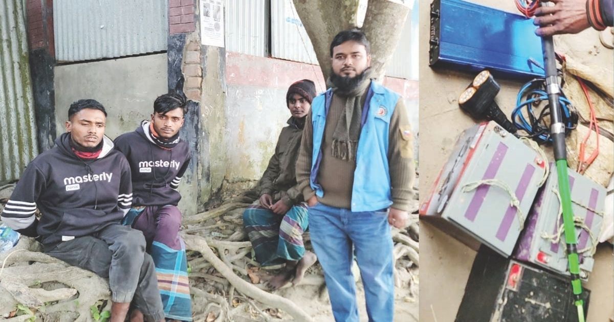 আটককৃতরা হলেন, গোয়লন্দ উপজেলার রাখালগাছি গ্রামের ইব্রাহিম শেখ ও সাইফুল শেখ এবং পাবনা জেলার আমিনপুর থানা ডালারচর গ্রামের কাউছার সরদার। এ সময় মাছ শিকারের সরঞ্জাম হিসেবে একটি ইলেকট্রিক ছুবনি/ছিপি, ১২ ভোল্টের তিনটি ব্যাটারি, ২৬,৮০,০০০ ওয়াটের একটি ইনভার্টার/আইপিএস, ২টি ফগ লাইট জব্দ করে থানার জিম্মায় দেওয়া হয়েছে। ইঞ্জিনচালিত ট্রলারটি ভাড়ায় চালিত হওয়ায় সেটি জব্দ তালিকা থেকে বাদ দেওয়া হয়েছে বলেও জানা গেছে।