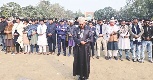 এ সময় বক্তারা বলেন, ওসমান হাদি বাংলাদেশের রাজনীতির আকাশে একজন উজ্জ্বল নক্ষত্র। দেশীয় এবং আন্তর্জাতিক চক্র মিলে তাকে হত্যা করেছে। হাদি দেশের মানুষের জন্য নিবেদিত প্রাণ ছিলেন। দেশের গণতান্ত্রিক অধিকার প্রতিষ্ঠায় হাদির অনেক বড় প্রয়োজন ছিল। হাদি ভাইকে আমরা কেউ দেখিনি কিন্তু তার বক্তব্য, তার দেশপ্রেম, তার যুক্তির কাছে সকল ফ্যাসিস্ট স্বৈরাচার এবং ভারতীয় আধিপত্যবাদ পরাজিত হয়েছিল। এটা বুঝতে পেরেই তারা হাদি ভাইকে হত্যার জন্য গুলি করেছে। কিন্তু তারা এক হাদিকে শহীদ করেছে এখন আমাদের হৃদয়ে লক্ষ্য কোটি হাদি জেগে উঠেছে। আমরা আজকে জানাজা থেকে শপথ নিচ্ছি আমরা সকলেই একেকটা হাদি হব এবং বাংলাদেশকে আধিপত্যবাদ থেকে মুক্ত করে ছাড়ব। আমরা ভারতের আধিপত্যের বিরুদ্ধে লড়াই চালিয়ে যাব।