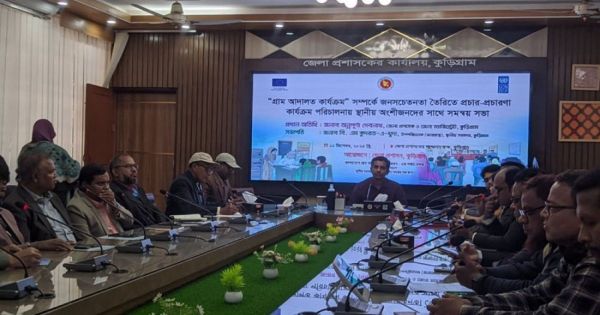 সাধারণ গ্রামীণ জনগণকে ন্যায়বিচার পাওয়ার সুযোগ সৃষ্টিতে ‘ভিলেজ কোর্ট’ তথা ‘গ্রাম আদালত’ ব্যবস্থা যথেষ্ট কার্যকর ও ইতিবাচক ভূমিকা রাখছে। বিরোধ নিষ্পত্তিতে কুড়িগ্রামের প্রান্তিক জনগোষ্ঠীর কাছে দিন দিন জনপ্রিয় হয়ে উঠছে এই আদালত। গত এক বছরে জেলায় এই আদালতের মাধ্যমে ২ হাজার ৮৫২টি মামলা নিষ্পত্তি হয়েছে। যার ৪০ ভাগ বিচারপ্রার্থী নারী। বৃহস্পতিবার কুড়িগ্রাম জেলা প্রশাসকের কার্যালয়ের সম্মেলন কক্ষে অনুষ্ঠিত অংশীজনদের সঙ্গে সমন্বয় সভায় এই তথ্য জানানো হয়।