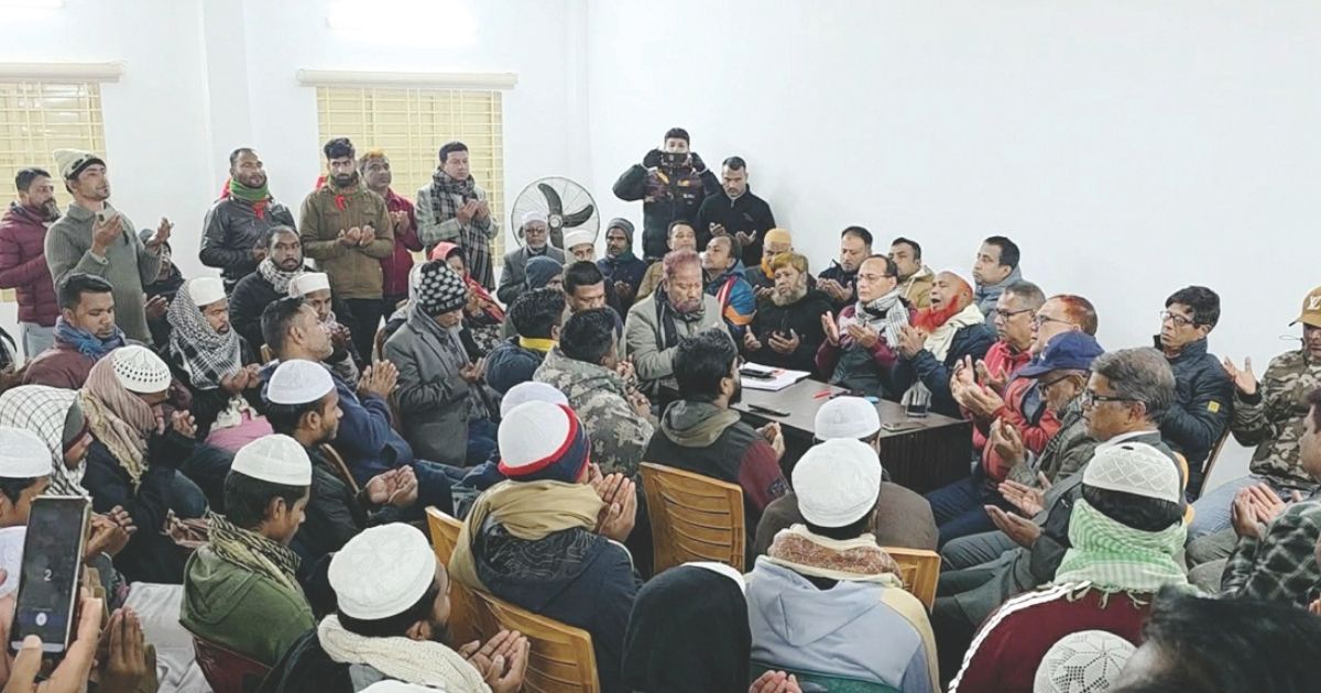 ঠাকুরগাঁও প্রতিনিধি জানান: সাবেক প্রধানমন্ত্রী ও বিএনপি চেয়ারপারসন বেগম খালেদা জিয়ার মৃত্যুতে ঠাকুরগাঁওয়ে স্থানে স্থানে দোয়ার আয়োজন করেছে জেলাবাসী। দল-মত নির্বিশেষে রাজনৈতিক নেতা-কর্মী থেকে শুরু করে সর্বস্তরের মানুষের মধ্যে দেখা গেছে শোক ও আবেগঘন পরিবেশ। মঙ্গলবার (৩০ ডিসেম্বর) ভোর থেকে বেগম জিয়ার মৃত্যু সংবাদ ছড়িয়ে পড়ার পরপরই ঠাকুরগাঁও শহরের বিভিন্ন রাজনৈতিক কার্যালয়ে নেমে আসে নীরবতা। বিএনপির জেলা ও উপজেলা পর্যায়ের কার্যালয়গুলোতে কালো ব্যানার টানানো হয় এবং নেতাকর্মীরা কালো ব্যাজ ধারণ করে শোক প্রকাশ করেন।