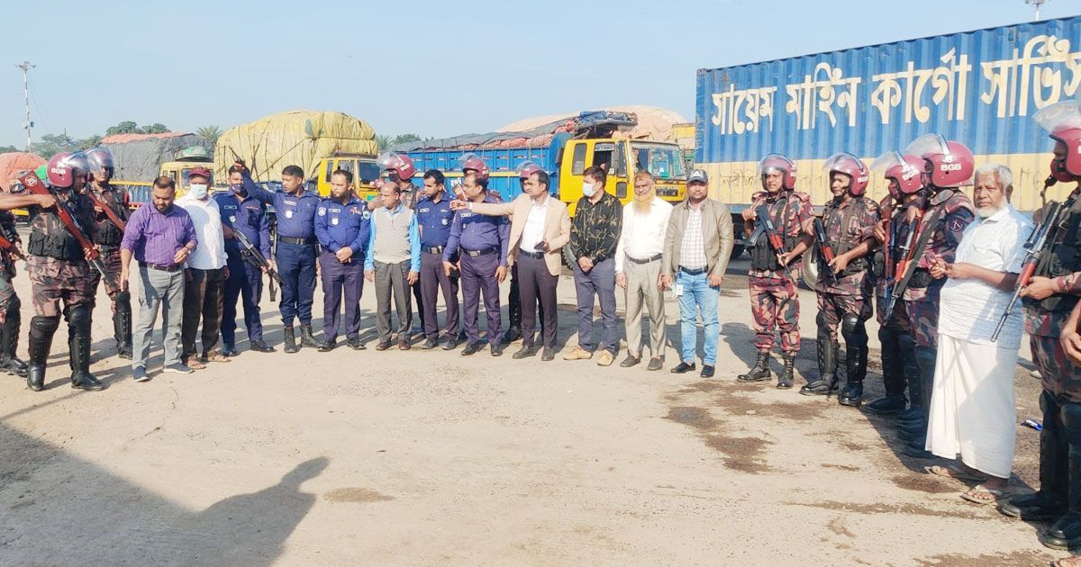 এদিন সকাল থেকে শিবগঞ্জ উপজেলা নির্বাহী ম্যাজিস্ট্রেটের উপস্থিতিতে বিজিবি পুলিশ ও আনসার সদস্যদের কঠোর নিরাপত্তায় বন্দর থেকে পণ্য নিয়ে ২৯৬টি ট্রাক ছেড়ে যায়।