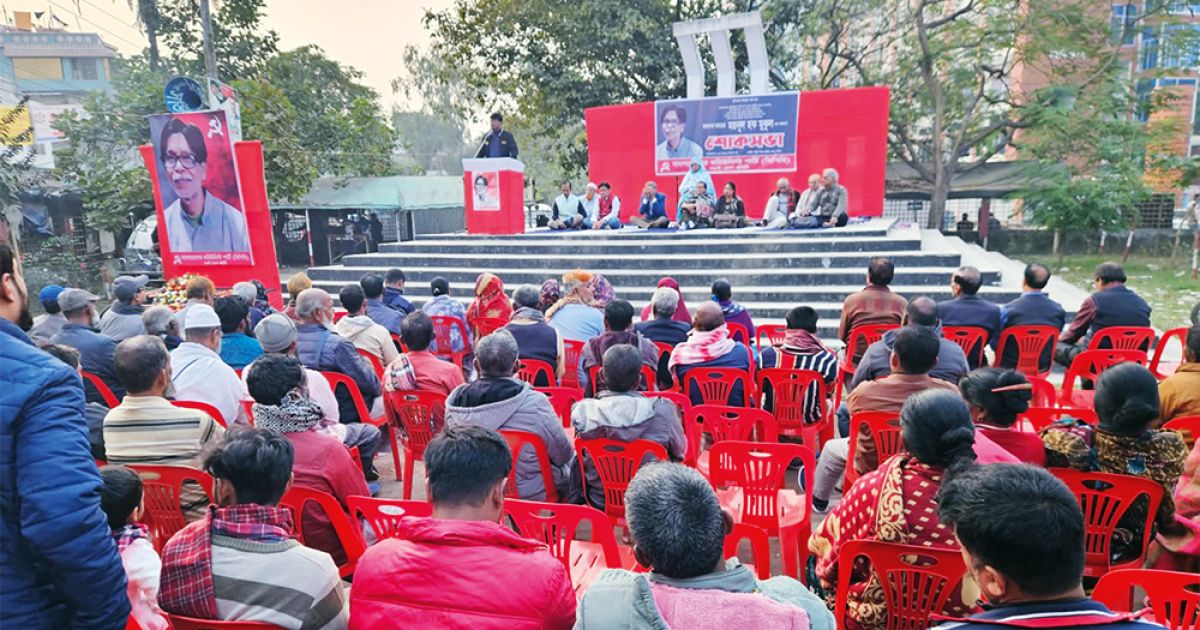 সিপিবি নওগাঁ জেলার সাধারণ সম্পাদক শফিকুল ইসলামের সঞ্চালনায় অনুষ্ঠানে বক্তব্য রাখেন সিপিবির জেলা কমিটির সাবেক সভাপতি প্রদ্যুৎ ফৌজদার, বাসদ নওগাঁ জেলা কমিটির আহ্বায়ক জয়নাল আবেদীন মুকুল, বাংলাদেশ ছাত্র ইউনিয়নের কেন্দ্রীয় সভাপতি মাহির শাহরিয়ার রেজা, ‘সোনালী অতীত’ সংগঠনের সদস্য আবুল কালাম আজাদ, আদিবাসী ইউনিয়নের কেন্দ্রীয় সভাপতি রেবেকা সরেন, একুশে পরিষদের সভাপতি ডিএম আব্দুল বারী, নওগাঁ জেলা জাতীয় আদিবাসী পরিষদের সভাপতি আমিন কুজুর এবং জহির রায়হান চলচ্চিত্র সংসদের সাধারণ সম্পাদক রহমান রায়হান বাহাদুর প্রমখ।