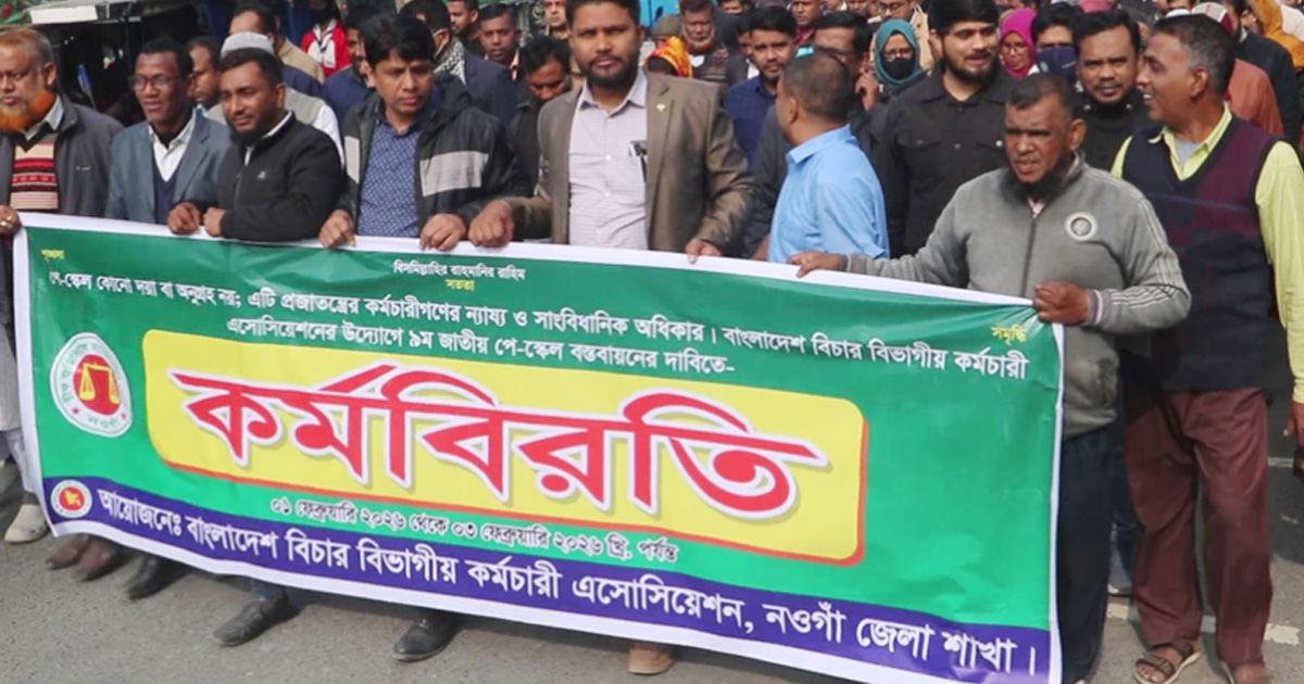 নবম পে-স্কেলের গেজেট প্রকাশসহ ৭ দফা দাবিতে নওগাঁয় বিক্ষোভ ও কর্মবিরতি করেছেন বিভিন্ন সরকারি দপ্তরের কর্মচারিরা। সোমবার (২ ফেব্রুয়ারি) বাংলাদেশ সরকারি কর্মচারী দাবি আদায় ঐক্য পরিষদের ব্যানারে সকাল ৯টায় জেলা প্রশাসকের কার্যালয়ের সামনে জড়ো হন বিভিন্ন সরকারি দপ্তরের কর্মচারীরা। পরে একটি বিক্ষোভ মিছিল করেন তারা।