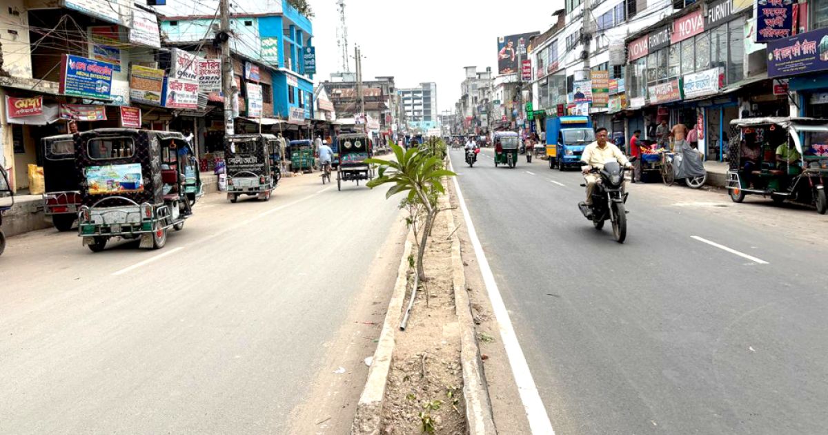 শহরের আড়াই কিলোমিটার চার লেন সড়ক ঘুরে দেখা যায়, পাঁচুর মোড় থেকে আমতলী পর্যন্ত যানজট প্রবণ এলাকায় সড়কের দুই পাশে নিবিঘ্নে যানবাহন চলাচল করছে। এই এলাকায় সড়কের দুই পাশে যত্রতত্র গাড়ি পাকিং করা হয়েছে। এতে সড়কে কিছুটা বিশৃঙ্খলা সৃষ্টি হয়েছে। আবার সড়ক ডিভাইডারে লোকজন যে যার ইচ্ছামতো গাছ লাগিয়েছেন। ডিভাইডারে একজন শ্রমিক ঘাস নিড়ানি দিচ্ছেন। রেলেগেটের পশ্চিম অংশে আগের মতো যানজট রয়েছে। সড়কের এই অংশ চার লেন করা হয়নি।