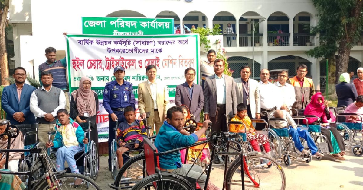 এছাড়া জেলা পরিষদের উদ্যোগে সেলাই মেশিন, হুইল চেয়ার, ট্রাই সাইকেল বিতরণ করা হয়।