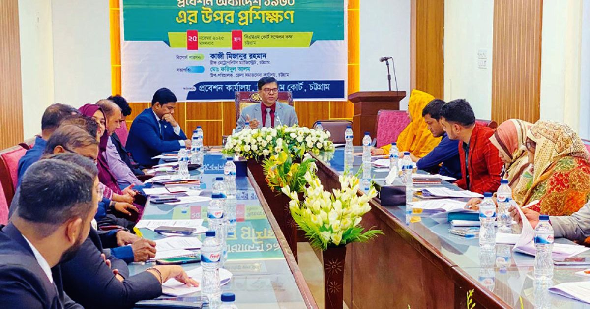 সিএমএম কোর্ট চট্টগ্রামের উদ্যোগে চিফ মেট্রোপলিটন ম্যাজিস্ট্রেট আদালতের সম্মেলন কক্ষে প্রবেশন অধ্যাদেশ ১৯৬০-এর এক প্রশিক্ষণ অনুষ্ঠিত হয়েছে। গত মঙ্গলবার সন্ধ্যা ৭টায় প্রবেশন কার্যালয়ে প্রশিক্ষণে চিফ মেট্রোপলিটন ম্যাজিস্ট্রেট, চট্টগ্রাম কাজী মিজানুর রহমান প্রধান প্রশিক্ষক হিসেবে উপস্থিত ছিলেন। জেলা সমাজসেবা কার্যালয়, চট্টগ্রামের উপপরিচালক মো. ফরিদুল আলমের সভাপতিত্বে অনুষ্ঠিত প্রশিক্ষণে উপস্থিত ছিলেন অতিরিক্ত চিফ মেট্রোপলিটন ম্যাজিস্ট্রেট সরকার হাসান শাহরিয়ার, মেট্রোপলিটন ম্যাজিস্ট্রেট মুহাম্মদ ইব্রাহীম খলিল, মো. আবু বকর সিদ্দিক, মোহাম্মদ মোস্তফা ও নুসরাত জাহান জিনিয়া।