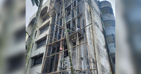 সরেজিমেন দেখা যায়, বিল্ডিংয়ের ঢালাই, প্লাস্টার, রং, দরজা-জানালা তৈরির জন্য কাঠমিস্ত্রি, ইলেকটিক মিস্ত্রি এবং টাইলস মিস্ত্রি এক দ্রুত কাজ করছেন। ঢালাইয়ের ব্যবহৃত পানিতে কর্দমাক্ত উচ্চবিদ্যালয়ের ভেতরের মাঠ। এর মধ্যে শিক্ষার্থীরা কষ্ট করে ক্লাস করছেন।
