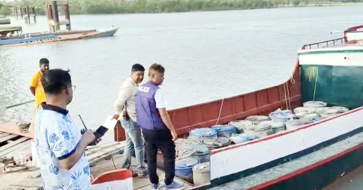 পটুয়াখালীর কলাপাড়ায় ৩ হাজার ২০০ লিটার ডিজেল ও ৩ হাজার লিটার পেট্রোল জব্দ করেছে পুলিশ। বৃহস্পতিবার (২ এপ্রিল) সকাল সাড়ে নয়টায় পৌর শহরের ফেরিঘাট সংলগ্ন আন্ধারমানিক নদীতে নোঙর করা একটি ট্রলার থেকে এসব জ্বালানি তেল জব্দ করা হয়।