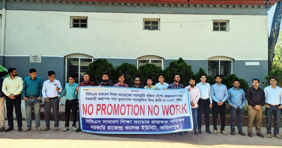 এ সময় শিক্ষকরা বলেন, সারাদেশে ৩২ থেকে ৩৭তম ব্যাচের প্রায় আড়াই হাজার প্রভাষক দীর্ঘদিন ধরে পদোন্নতির অপেক্ষায় রয়েছেন। প্রাপ্য পদোন্নতি না পাওয়ায় তাদের মধ্যে গভীর হতাশা দেখা দিয়েছে। প্রশাসনিক জটিলতা ও ফাইলে বিলম্বের কারণে তাদের পদোন্নতির গেজেট ঝুলে আছে। ন্যায্য পদোন্নতির আদেশ জারি না হওয়া পর্যন্ত কর্মবিরতি চলবে বলেও জানান তারা।