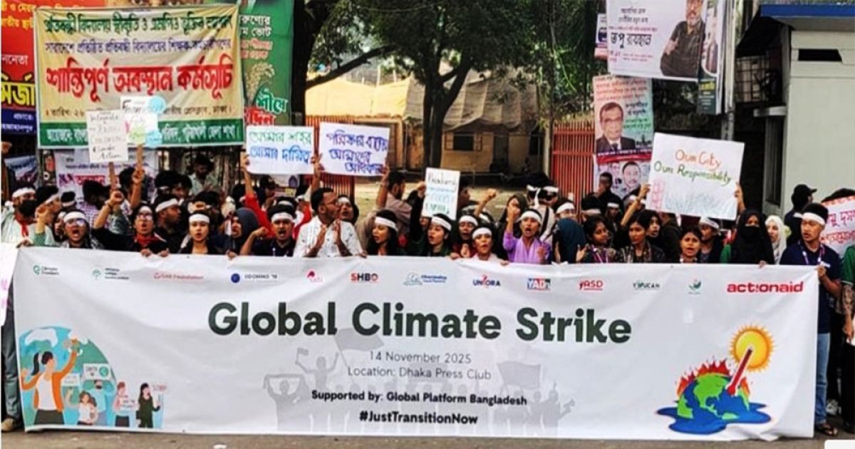জলবায়ু ন্যায্যতার দাবিতে রাজধানীর জাতীয় প্রেস ক্লাবের সামনে এক বিশাল ‘গ্লোবাল ক্লাইমেট স্ট্রাইক’ (বৈশ্বিক জলবায়ু ধর্মঘট) অনুষ্ঠিত হয়েছে।