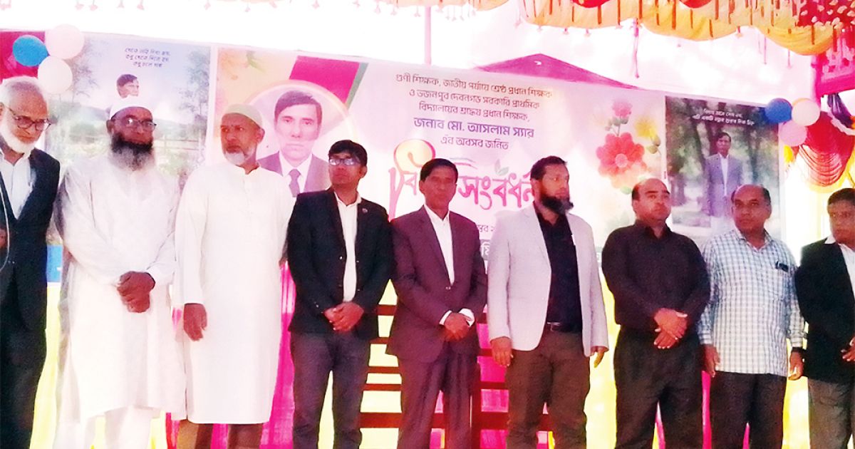 পঞ্চগড়ের তেঁতুলিয়ার ভজনপুর দেবনগর প্রাথমিক বিদ্যালয়ের প্রধান শিক্ষকের অবসর গ্রহণ উপলক্ষে বিদ্যলয়ের সাবেক শিক্ষার্থী, সহকর্মী ও এলাকাবাসীর পক্ষ থেকে গত বৃহস্পতিবার বিকালে রাজকীয় বিদায় সংবর্ধনা প্রদান করা হয়েছে। শিক্ষকের প্রতি ভালোবাসা এবং শ্রদ্ধার বিরল দৃষ্টান্ত স্থাপন করেছেন সাবেক শিক্ষার্থীরা। প্রিয় শিক্ষকের বিদায় বেলায় সাবেক, বর্তমান শিক্ষার্থী ও সহকর্মীদের ভালোবাসায় সিক্ত হয়েছেন তেঁতুলিয়া উপজেলার ৭নং ভজনপুর দেবনগর সরকারি প্রাথমিক বিদ্যালয়ের প্রধান শিক্ষক মো. আসলাম হোসেন।