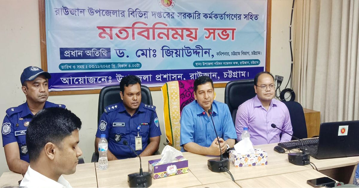 চট্টগ্রাম বিভাগের বিভাগীয় কমিশনার ড. মোহাম্মদ জিয়াউদ্দিন বলেছেন, ‘রাউজানের পরিস্থিতি ভয়ংকর মনে হলেও, বাস্তবে সব উন্নয়ন সূচকে রাউজান এগিয়ে আছে। এখানে শুধু হত্যাকাণ্ডের ঘটনা তুলনামূলক বেশি ঘটে। আমরা একটি সুন্দর ও শান্তিপূর্ণ বাংলাদেশ চাই, এজন্য রাজনৈতিক কমিটমেন্ট ও সমন্বিত প্রচেষ্টা জরুরি।’ গত সোমবার রাউজান উপজেলা প্রশাসনের উদ্যোগে আয়োজিত এক অনুষ্ঠানে তিনি এসব কথা বলেন। অনুষ্ঠানে উপজেলার বিভিন্ন শিক্ষা প্রতিষ্ঠানে ক্রীড়া সামগ্রী বিতরণ ও দুঃস্থদের মাঝে আর্থিক সহায়তা প্রদান করা হয়। রাউজান উপজেলা অডিটোরিয়ামে অনুষ্ঠিত অনুষ্ঠানে সভাপতিত্ব করেন উপজেলা নির্বাহী অফিসার (ইউএনও) জিসান বিন মাজেদ। সঞ্চালনা করেন সহকারী কমিশনার (ভূমি) অংছিং মারমা। অনুষ্ঠানে বিশেষ অতিথি ছিলেন সহকারী পুলিশ সুপার বেলায়েত হোসেন। বক্তব্য রাখেন রাউজান থানার ভারপ্রাপ্ত কর্মকর্তা মনিরুল ইসলাম ভূঁইয়া, উপজেলা কৃষি কর্মকর্তা মাসুম কবির, উপজেলা প্রাথমিক শিক্ষা কর্মকর্তা নুরুন নবী, মাধ্যমিক একাডেমি সুপারভাইজার সজল চন্দ্র চন্দ, সমাজসেবা কর্মকর্তা মনিরুল ইসলাম, সমবায় কর্মকর্তা মিন্টু বড়ুয়া, প্রাণিসম্পদ কর্মকর্তা জয়িতা বসু, পল্লী বিদ্যুৎ সমিতির জিএম হারুন আর রশিদ ও উপজেলা প্রকৌশলী আবুল কালামসহ বিভিন্ন দপ্তরের কর্মকর্তারা। পরে বিভাগীয় কমিশনার উপজেলা পরিষদে কর্মরত সরকারি কর্মকর্তাদের সঙ্গে মতবিনিময় সভা করেন। এ সময় ইউএনও জিসান বিন মাজেদ টিভি ডিসপ্লের মাধ্যমে ‘সম্ভাবনাময় রাউজান’ শীর্ষক একটি উপস্থাপনা প্রদর্শন করেন, যেখানে রাউজানের উন্নয়নচিত্র তুলে ধরা হয়। সরকারি কর্মকর্তারা তাদের নিজ নিজ দপ্তরের সমস্যা ও সম্ভাবনা তুলে ধরেন বিভাগীয় কমিশনারের সামনে। অনুষ্ঠান শেষে বিভাগীয় কমিশনার ইউএনও বাসভবনের পাশে নবনির্মিত ‘ফুলঝুরি পার্ক’ উদ্বোধন করেন।