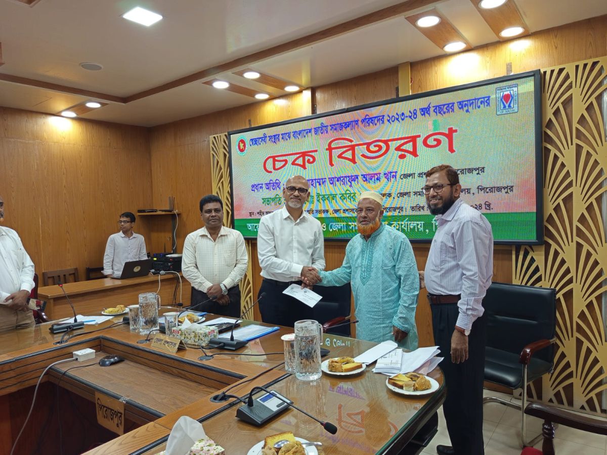 পিরোজপুর জেলা সমাজসেবা থেকে নিবন্ধিত ৪০টি স্বেচ্ছাসেবী সংগঠনকে বাংলাদেশ সমাজ কল্যাণ পরিষদে অনুদানের ৮ লাখ ৩ হাজার টাকার চেক প্রদান করা হয়েছে। আজ মঙ্গলবার বেলা সাড়ে ১১টায় জেলা প্রশাসকের সম্মেলন কক্ষে আয়োজিত এক অনুষ্ঠানের মাধ্যমে চেকগুলো বিতরণ করা হয়।