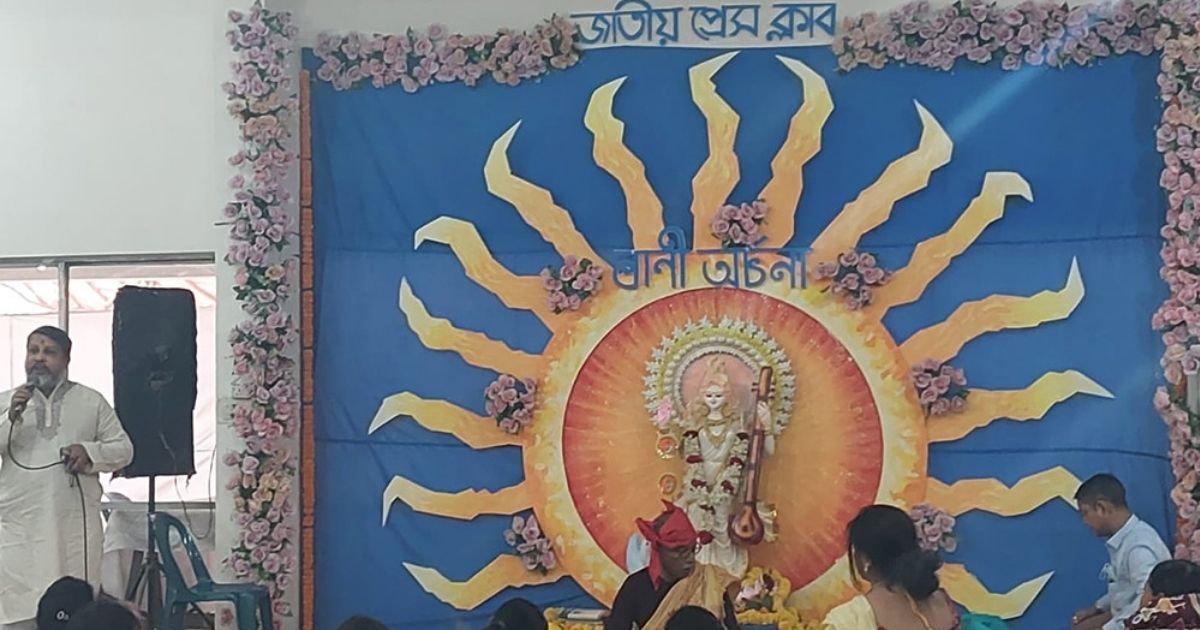 বিদ্যাদেবী সরস্বতীর চরণে পুষ্পাঞ্জলি নিবেদন, বাণী অর্চনা ও বর্ণাঢ্য সাংস্কৃতিক অনুষ্ঠানের মধ্য দিয়ে শুক্রবার (২৩ জানুয়ারি) রাজধানীসহ সারাদেশে উৎসবমুখর পরিবেশে সরস্বতী পূজা উদযাপিত হয়েছে। প্রতিবছর মাঘ মাসের শুক্ল পক্ষের পঞ্চমী তিথিতে শ্বেতশুভ্র কল্যাণময়ী এই দেবীর বন্দনা করা হয়, যা সনাতন ধর্মাবলম্বীদের কাছে ‘বসন্ত পঞ্চমী’ হিসেবে পরিচিত। জ্ঞান, বিদ্যা, সুর ও শক্তির আধার হিসেবে দেবী সরস্বতীর এই আরাধনাকে ঘিরে সারাদেশের শিক্ষা প্রতিষ্ঠান ও মন্দিরগুলোতে ছিল উৎসবের আমেজ। ঢাক-ঢোল-কাঁসর, শঙ্খ আর উলুধ্বনিতে প্রতিটি পূজা মণ্ডপ মুখরিত হয়ে ওঠে।