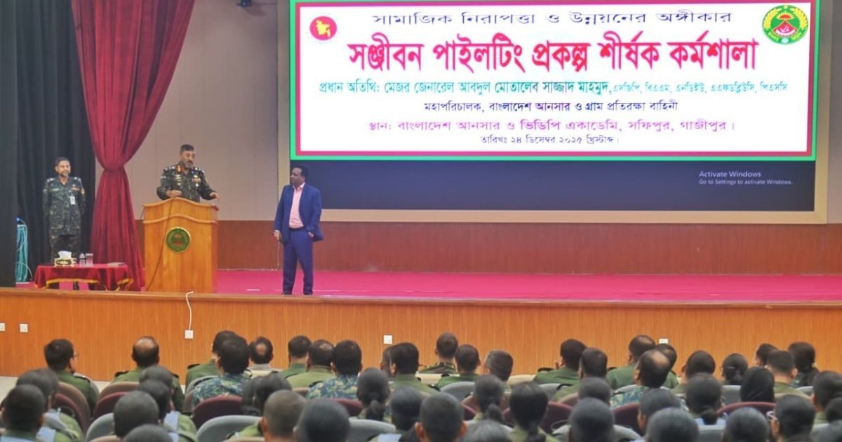 বাংলাদেশ আনসার ও গ্রাম প্রতিরক্ষা বাহিনীর কল্যাণমূলক উদ্যোগ ‘সঞ্জীবন প্রকল্প’ বিষয়ক দিনব্যাপী কর্মশালা বুধবার (২৪ ডিসেম্বর) অনুষ্ঠিত হয়েছে। বাংলাদেশ আনসার ও ভিডিপি একাডেমির বীর বিক্রম শহীদ এলাহী অডিটোরিয়ামে আয়োজিত এ কর্মশালাটি বাংলাদেশ আনসার ওয়েলফেয়ার ট্রাস্টের আওতায় পরিচালিত হয়। কর্মশালার উদ্বোধনী পর্বে প্রধান অতিথি হিসেবে বক্তব্য রাখেন আনসার ও ভিডিপি’র মহাপরিচালক মেজর জেনারেল আবদুল মোতালেব সাজ্জাদ মাহমুদ। তিনি ‘সঞ্জীবন প্রকল্প’-এর উদ্দেশ্য, বাস্তবায়ন কাঠামো এবং এর মাধ্যমে সদস্যদের আর্থসামাজিক উন্নয়নের সম্ভাবনা তুলে ধরেন।