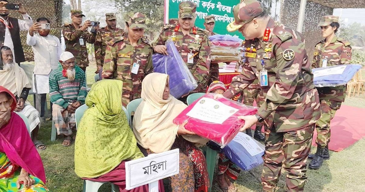 সেনাবাহিনীর সংশ্লিষ্ট অঞ্চলের পক্ষ থেকে দেওয়া সংবাদ বিজ্ঞপ্তির সূত্রে জানা যায়, শুক্রবার (২৩ জানুয়ারি) মুক্তাগাছার হাজী কাশেম আলী মহিলা ডিগ্রি কলেজ মাঠে চক্ষু চিকিৎসা সেবা পরিচালনা করা হয়। সকালে এ কার্যক্রম পরিদর্শন করেন ১৯ পদাতিক ডিভিশনের জেনারেল অফিসবার কমান্ডিং ও ঘাটাইল এরিয়ার এরিয়া কমান্ডার মেজর জেনারেল মোহা. হোসাইন আল মোরশেদ। পরে মুক্তাগাছার শারীরিক শিক্ষা কলেজ মাঠে দরিদ্রদের মধ্যে কম্বল বিতরণ করেন তিনি। সেনা প্রধানের দিকনির্দেশনায় এসব কার্যক্রম পরিচালনা করা হয়।