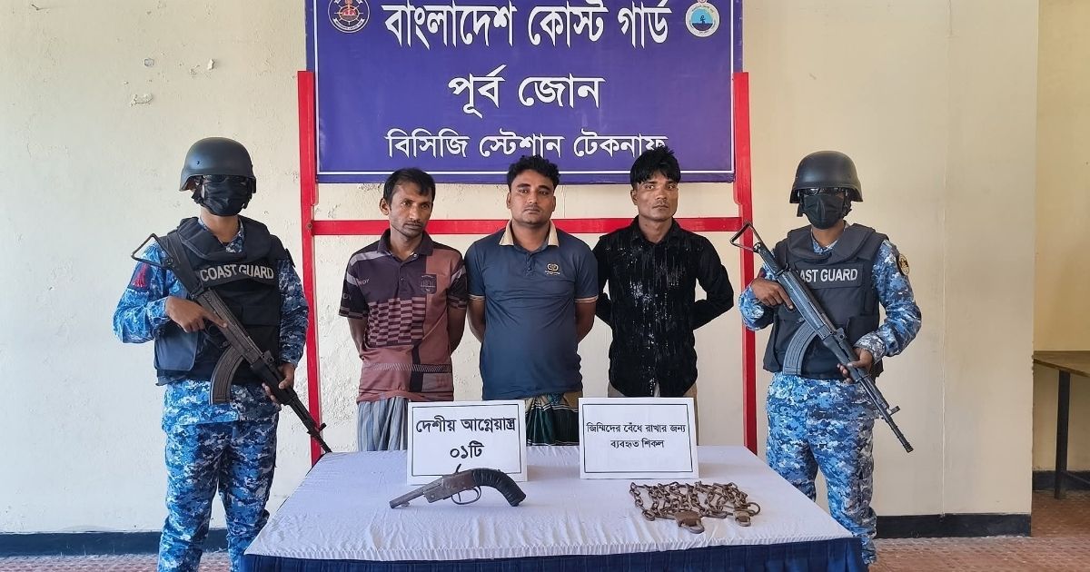 কক্সবাজারের টেকনাফ বাহার ছড়ার গহীন পাহাড়ে কোস্টগার্ডের বিশেষ অভিযানে দেশীয় বন্দুকসহ তিন মানবপাচারকারীকে আটক করা হয়েছে। একই সঙ্গে পাচারের উদ্দেশ্যে আটকে রাখা নারী, পুরুষ ও শিশুসহ মোট সাতজন ভুক্তভোগীকে উদ্ধার করা হয়েছে।