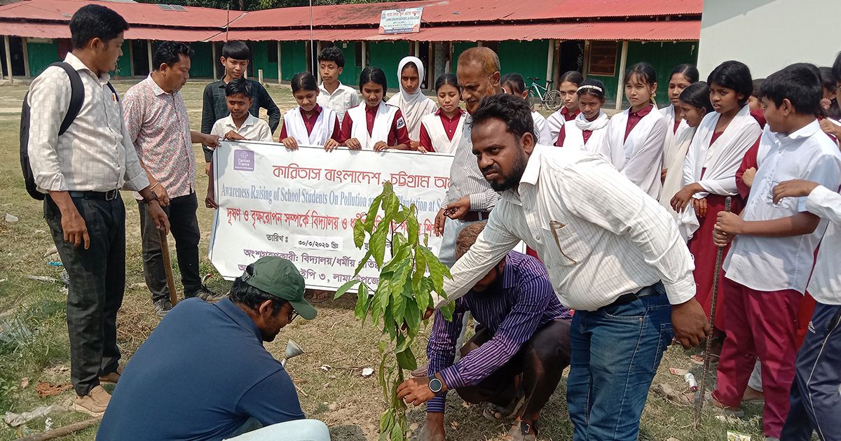 বান্দরবান জেলার লামা উপজেলায় পরিবেশ দূষণ ও বৃক্ষ রোপন সম্পর্কে বিদ্যালয়- ধর্মীয় প্রতিষ্ঠান পর্যায়ে সচেসনতা বৃদ্ধির লক্ষ্যে গাছের চারা রোপন শুরু করেছে বেসরকারি সংস্থা কারিতাস বাংলাদেশ। সোমবার (৩০ মার্চ) দুপুরে উপজেলার লামা সদর স্কুল এন্ড কলেজ মাঠে একটি জলপাই গাছের চারা রোপনের মধ্য দিয়ে কর্মসূচির উদ্ভোধন করা হয়।