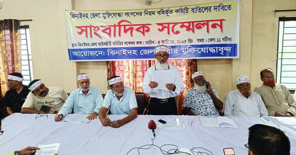 বাংলাদেশ মুক্তিযোদ্ধা সংসদ কেন্দ্রীয় কমান্ড কাউন্সিল কর্তৃক নিয়মবহির্ভূতভাবে ঝিনাইদহ জেলা কমান্ড অনুমোদনের বিরুদ্ধে নিন্দা ও প্রতিবাদ জানিয়ে সংবাদ সম্মেলন করেছেন জেলার মুক্তিযোদ্ধারা। শনিবার ঝিনাইদহ আইনজীবী সমিতির ভবনে এ সংবাদ সম্মেলনের আয়োজন করা হয়।