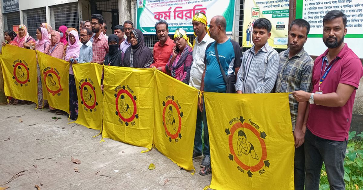 নড়াইল সদর উপজেলা স্বাস্থ্য ও পরিবার পরিকল্পনা কার্যালয়ের সামনে কর্মবিরতি পালন করছে সদর উপজেলার ইউনিয়ন পর্যায়ে কর্মরত স্বাস্থ্য সহকারীরা।