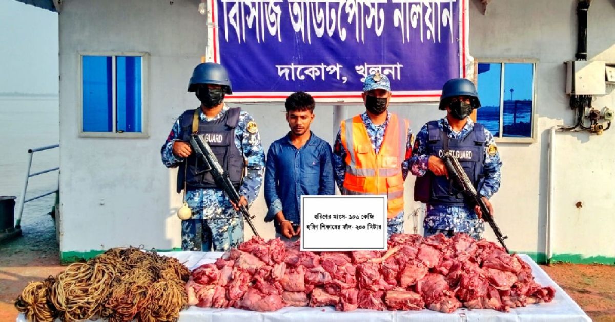 তিনি বলেন, গোপন সংবাদের ভিত্তিতে আজ ২৫ অক্টোবর ২০২৫ তারিখ ভোর ৪ টায় কোস্ট গার্ড আউটপোস্ট নলিয়ান কর্তৃক খুলনার দাকোপ থানাধীন সুন্দরবনের নলিয়ান সংলগ্ন এলাকায় একটি বিশেষ অভিযান পরিচালনা করা হয়। অভিযান চলাকালীন উক্ত এলাকা হতে ১০৬ কেজি হরিণের মাংস ও ২০০ মিটার হরিণ শিকারের ফাঁদসহ ১ জন হরিণ শিকারিকে আটক করা হয়।