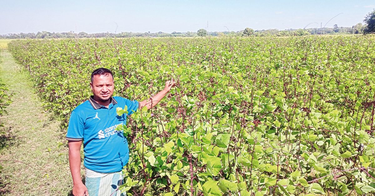 রোববার দিগলগাঁও, হাতিগড়া, রায়চো ও কালিরবাজার কলেজ রোড এলাকায় সরেজমিন ঘুরে দেখা যায়- ধানি জমিতে কাঠি–কেওড়া পদ্ধতিতে রূপবাণ জাতের শিম চাষ করা হয়েছে। ইতোমধ্যে ফলন আসতে শুরু করেছে।