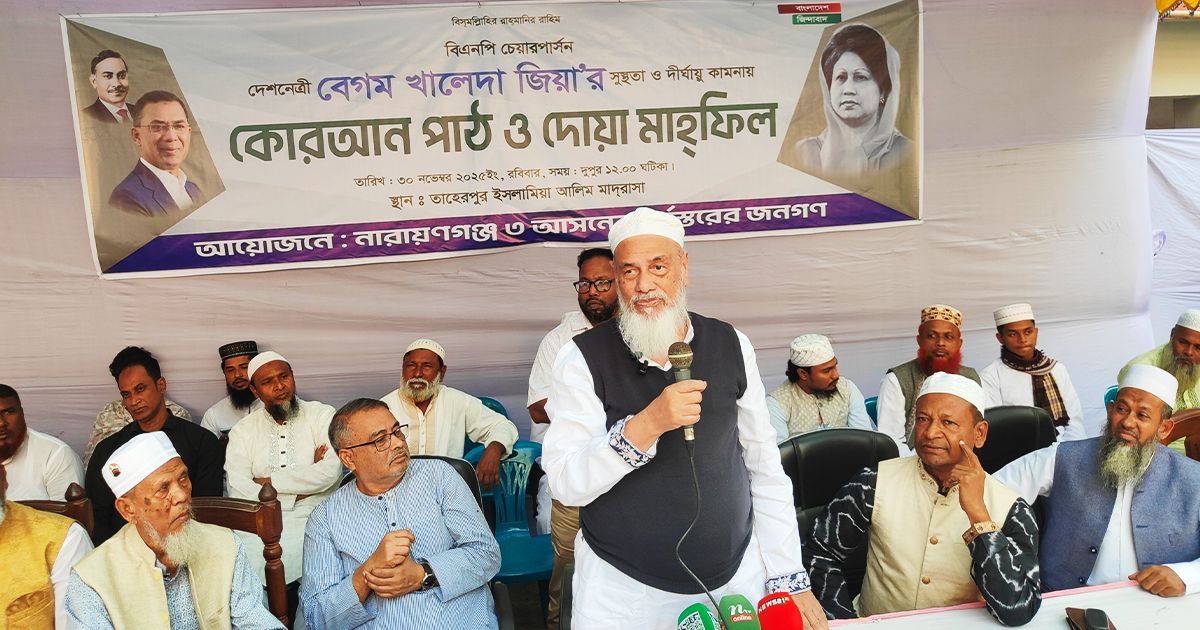সোনারগাঁও (নারায়ণগঞ্জ) প্রতিনিধি: বিএনপির চেয়ারপার্সন ও সাবেক প্রধানমন্ত্রী বেগম খালেদা জিয়ার সুস্থতা ও দীর্ঘায়ু কামনায় নারায়ণগঞ্জের সোনারগাঁওয়ে কোরআন পাঠ ও দোয়া মাহফিল অনুষ্ঠিত হয়েছে।