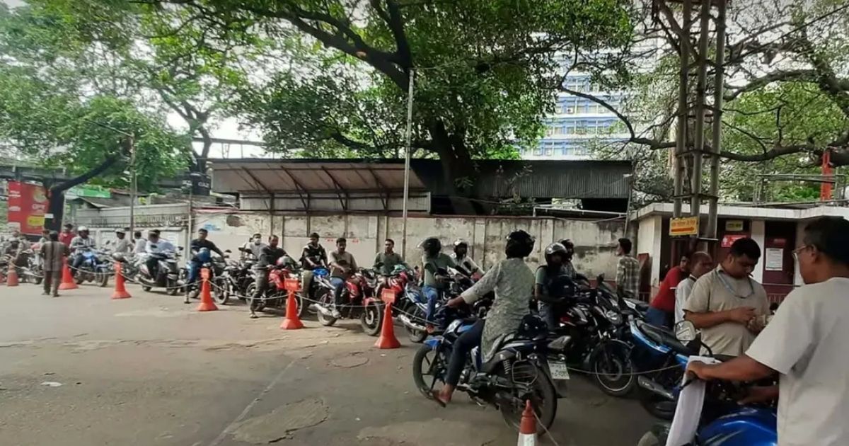 জ্বালানি তেল নিতে রাজধানীর মৎস্যভবন এলাকায় অবস্থিত রমনা পেট্রোল পাম্পের চারপাশে প্রায় এক কিলোমিটারজুড়ে সড়কে লম্বা লাইন দিয়ে দাঁড়িয়ে আছেন মোটরসাইকেল ও প্রাইভেটকার চালকেরা। লাইনের শেষ প্রান্তটি গিয়ে পৌঁছেছে পাম্পের অদূরে গণপূর্ত ভবনের গেটের সামনে। এই দীর্ঘ সারি ঘুরে পাম্পের সামনে পৌঁছাতে গাড়িচালকদের সময় লাগছে অন্তত দুই থেকে আড়াই ঘণ্টা।