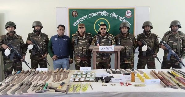 শুক্রবার (৯ জানুয়ারি) বিকেলে অভিযান শেষে উদ্ধারকৃত অস্ত্রশস্ত্র ও গ্রেপ্তারদের নিয়ে খালিয়ারচর জাহানারা বেগম উচ্চ বিদ্যালয় মাঠে এক সংবাদ সম্মেলনে এসব কথা তথ্য জানান ৪৫ এমএলআরএস রেজিমেন্টের অধিনায়ক লেফটেন্যান্ট কর্নেল জুবায়ের।