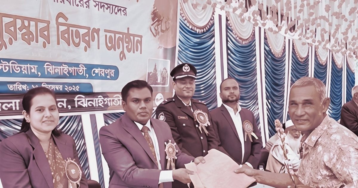 শেরপুরের ঝিনাইগাতীতে মহান বিজয় দিবস উপলক্ষে জাতির শ্রেষ্ঠ সন্তান বীর মুক্তিযোদ্ধা ও শহীদ মুক্তিযোদ্ধা পরিবারের সদস্যদের সংবর্ধনা দেওয়া হয়েছে। মঙ্গলবার (১৬ ডিসেম্বর) দুপুরে উপজেলা প্রশাসনের উদ্যোগে উপজেলা স্টেডিয়ামে এ সংবর্ধনা অনুষ্ঠানের আয়োজন করা হয়।