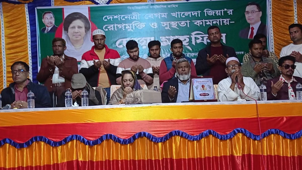 এ সময় বক্তারা বেগম খালেদা জিয়ার দ্রুত আরোগ্য ও দীর্ঘায়ু কামনা করেন এবং দেশের গণতন্ত্র পুনরুদ্ধারে তাঁর অবদান স্মরণ করেন। শেষে দেশনেত্রী বেগম খালেদা জিয়ার সুস্থতা, দেশ ও জাতির শান্তি এবং সমৃদ্ধি কামনা করে বিশেষ মোনাজাত করা হয়।