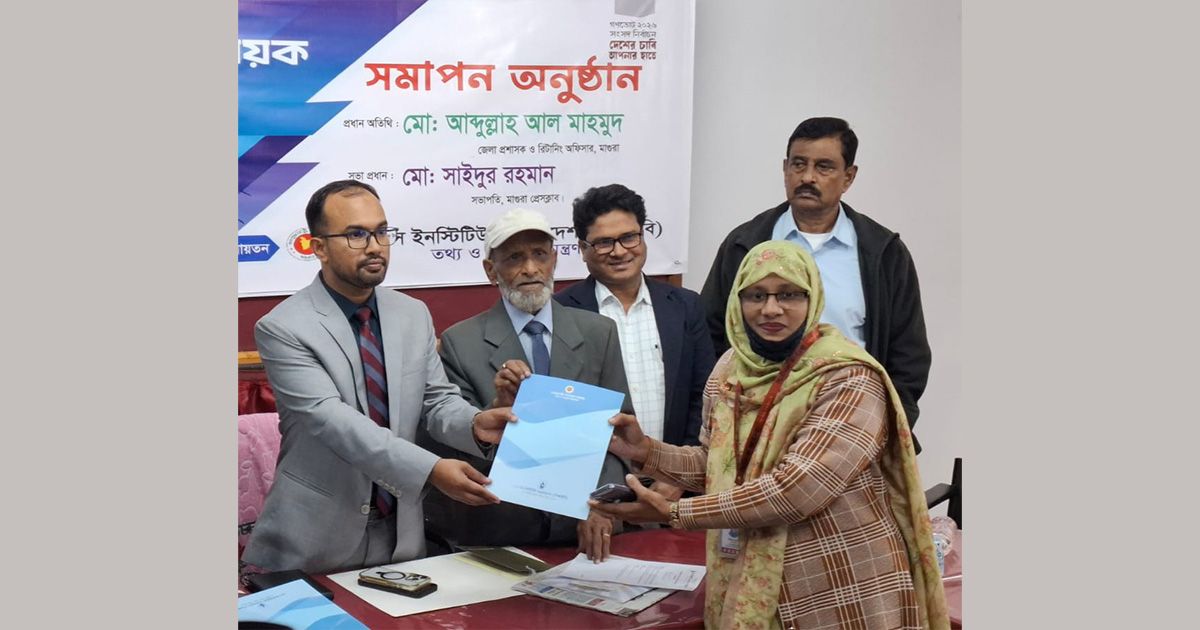 মঙ্গলবার (২০ জানুয়ারি) দুপুরে মাগুরা প্রেসক্লাব মিলনায়তনে জেলা প্রশাসক ও রিটার্নিং অফিসার মোঃ আব্দুল্লাহ আল মাহামুদ প্রধান অতিথি হিসেবে উপস্থিত থেকে এ সনদপত্র বিতরণ করেন।