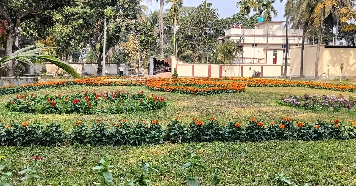 সরেজমিনে দেখা গেছে, উপজেলা পরিষদ চত্বরের প্রতিটি কোণ এখন যেন একেকটি শিল্পকর্ম। বিশেষ করে সবুজ ঘাসের বুকে গাঁদা ফুল দিয়ে তৈরি করা দৃষ্টিনন্দন নকশা সবার নজর কাড়ছে। শুধু গাঁদা নয়, বিন্যাস অনুযায়ী বিভিন্ন প্রজাতির ফুলের চারা রোপণ করায় পুরো এলাকায় ছড়িয়ে পড়েছে এক স্নিগ্ধ আমেজ। নিয়মিত পরিচর্যা ও সুষম রক্ষণাবেক্ষণের ফলে ফুলগুলোর সৌন্দর্য পূর্ণরূপে বিকশিত হয়েছে।