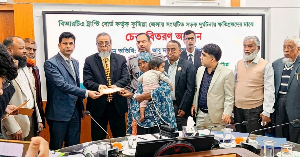 কুমিল্লা জেলায় সংঘটিত বিভিন্ন সড়ক দুর্ঘটনায় নিহত ও আহত পরিবারগুলোর মাঝে আর্থিক সহায়তা হিসেবে ২ কোটি টাকার চেক বিতরণ করেছে বাংলাদেশ রোড ট্রান্সপোর্ট অথরিটি (বিআরটিএ) ট্রাস্টি বোর্ড।