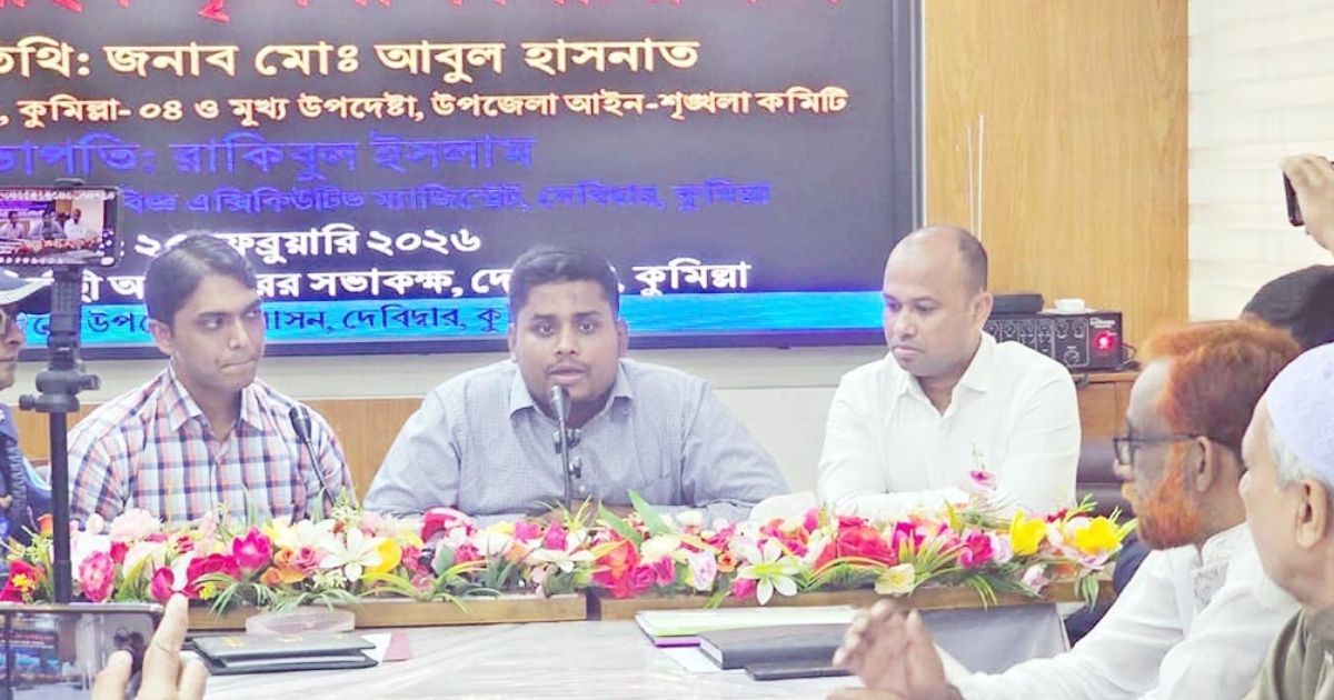 কুমিল্লা-৪ (দেবিদ্বার) আসনের সংসদ সদস্য হাসনাত আব্দুল্লাহ বলেন, ‘থানা পুলিশকে ‘ম্যানেজ’ করেই গোমতী নদী থেকে অবৈধভাবে মাটি কাটা হচ্ছে। বুধবার (২৫ ফেব্রুয়ারি) দেবিদ্বার উপজেলা নির্বাহী অফিসারের সভাকক্ষে অনুষ্ঠিত মাসিক আইনশৃঙ্খলা সভায় প্রধান অতিথির বক্তব্যে তিনি এ অভিযোগ তোলেন।’