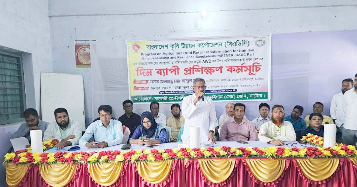 জলবায়ু পরিবর্তনের প্রভাবে দেশে কৃষি খাতে পানির সংকট বেড়েছে। এই পরিস্থিতিতে নাটোরের বড়াইগ্রামে সোমবার (২ মার্চ) পানি ব্যবহারকারী কৃষক গ্রুপের জন্য বিকল্প ভেজানো ও শুকানো (AWD) পদ্ধতি বিষয়ে দিনব্যাপী প্রশিক্ষণ দেওয়া হয়েছে।