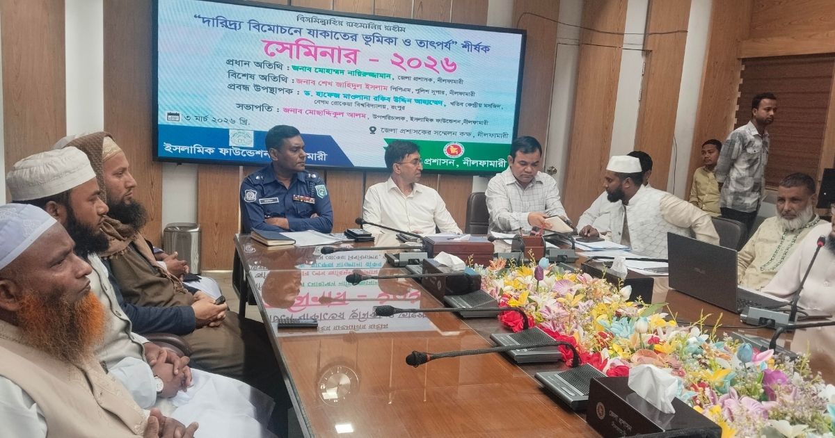 নীলফামারীতে দারিদ্র্য বিমোচনে যাকাতের ভূমিকা ও তাৎপর্য শীর্ষক সেমিনার হয়েছে। মঙ্গলবার (৩ মার্চ) সকালে জেলা প্রশাসকের সম্মেলন কক্ষে এ সেমিনার হয়। এতে প্রধান অতিথি ছিলেন জেলা প্রশাসক মোহাম্মদ নায়িরুজ্জামান।