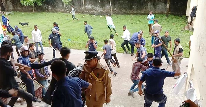 গতকাল সোমবার দুপুর ১২টার দিকে বরগুনা-১ আসনের সংসদ সদস্য ধীরেন্দ্র দেবনাথ শম্ভুর উপস্থিতিতেই জেলা শিল্পকলা একাডেমি মিলনায়তনের সামনে সংঘর্ষে জড়ায় ছাত্রলীগের দুই পক্ষ। এ সময় পুলিশের লাঠিপেটায় বেশ কয়েকজন ছাত্রলীগ নেতা-কর্মী আহত হন। এ ঘটনার একটি ভিডিও সামাজিক যোগাযোগ মাধ্যমে ছড়িয়ে পড়েছে। ছাত্রলীগের নেতা-কর্মীরা এ ঘটনার বিচার দাবি করছেন।